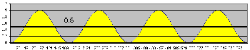 The first graph shows a complex waveform containing a 3hz sine frequency, where the average is zero. The graph to the right shows the result of multiplying a 3hz sine frequency by the function (the average is clearly above zero)