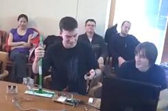 for the etch-a-sketch, and we added sensors to a swiffer (accelerometer, button, and a pressure pad) for our